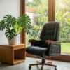 Exclusive executive chair with high back designed to provide comfort and authority in your workspace. Uses solid wood frame on legs and armrests, wrapped in premium synthetic leather that gives a luxurious yet professional impression.